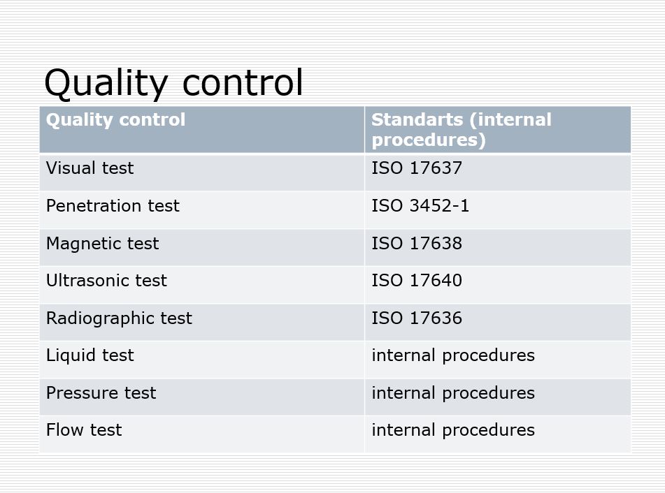 Quality check of production